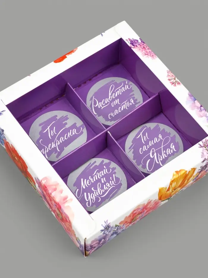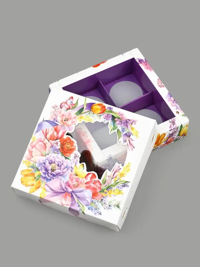 Коробка под 4 конфеты со скретч-слоем «Букет», 10.5 х 10.5 х 3.5 см