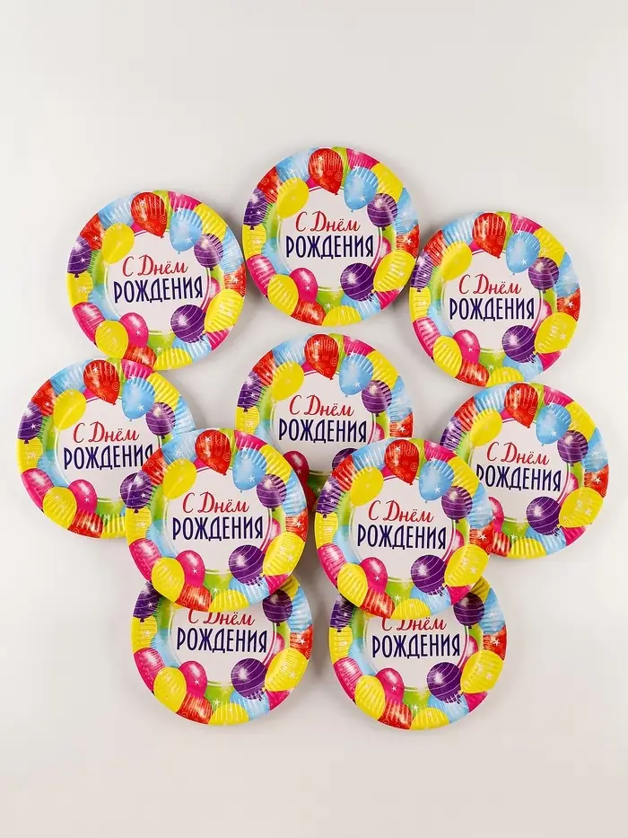 Тарелка одноразовая бумажная «С Днём рождения», 18 см
