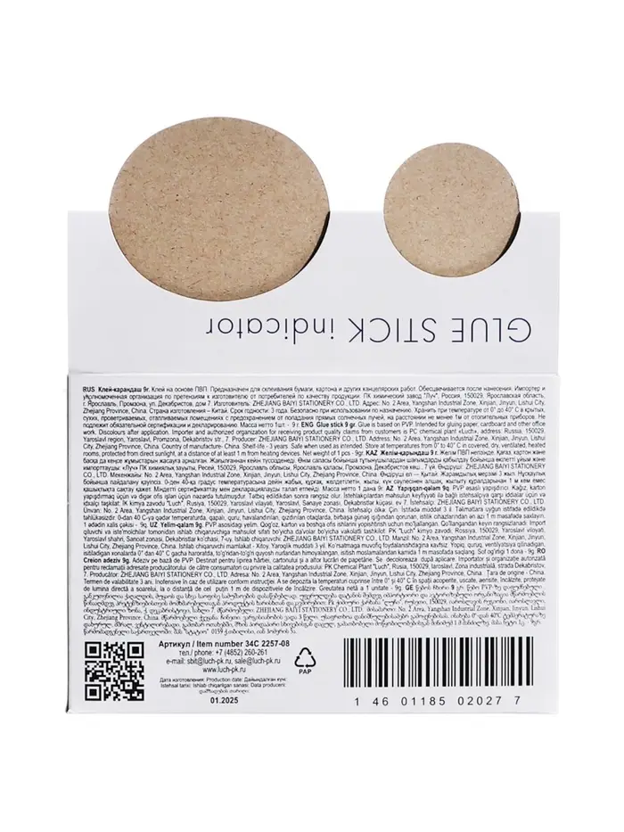 Наш клей-карандаш PVP с индикатором является помощником для тех, кто ценит аккуратность и точность. Легкий в использовании, он подходит как для школьных уроков, так и для работы в офисе. Изменение цвета облегчает контроль нанесения и помогает избежать ошибок, создавая безупречные поделки.