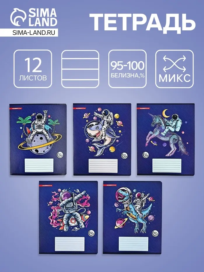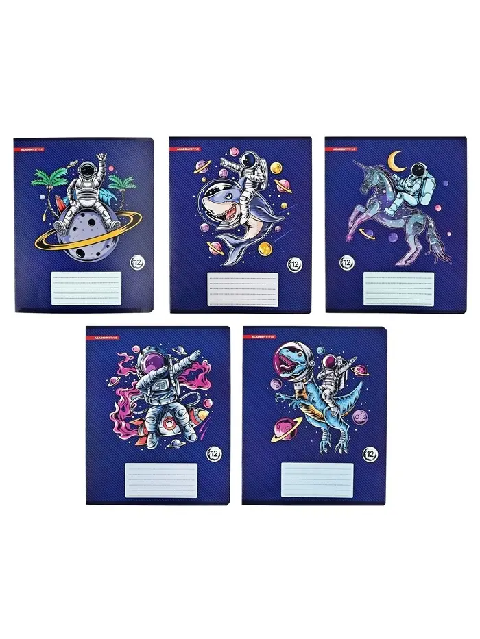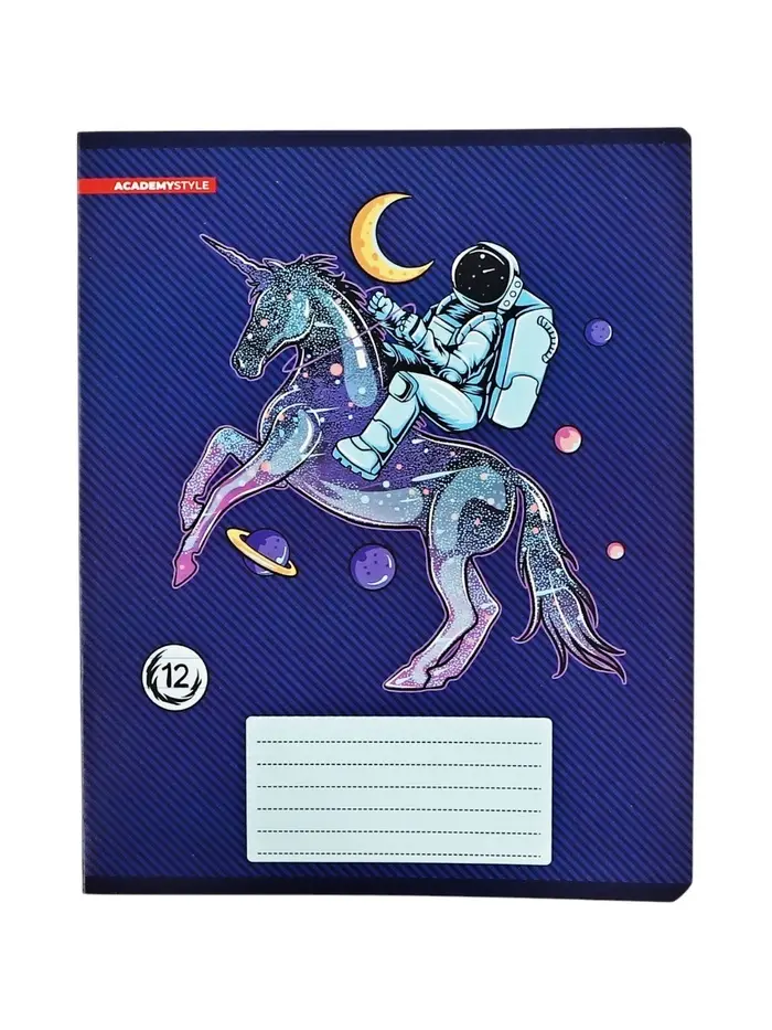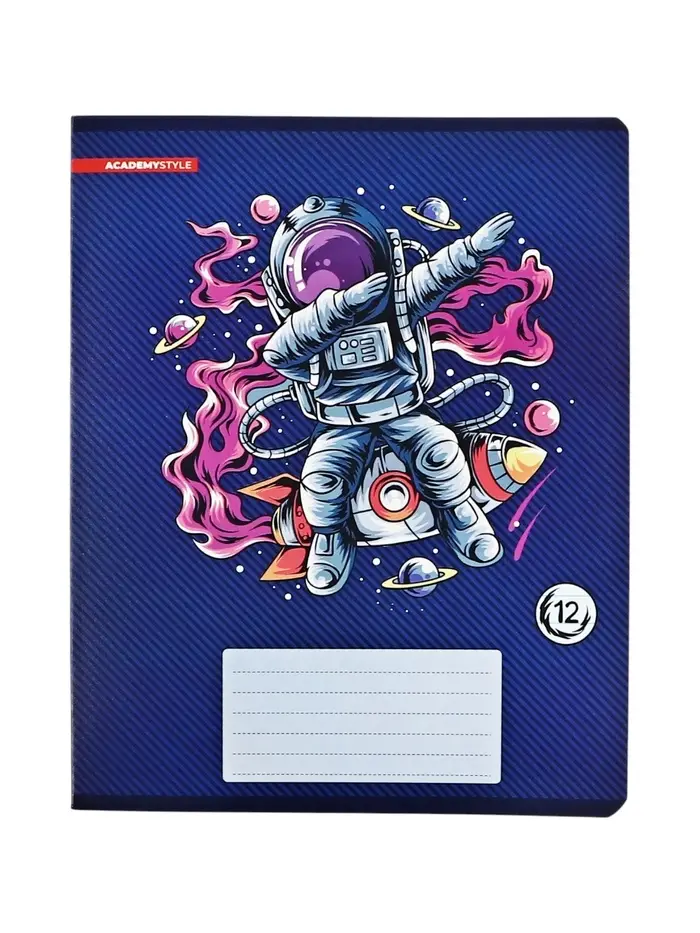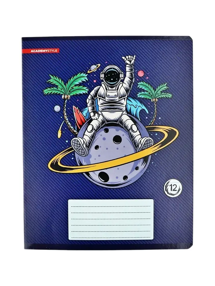 Тетрадь 12 листов, в линейку «Космическое приключение», мелованный картон, МИКС