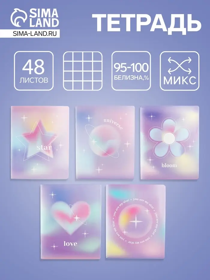 Тетрадь 48 листов, в клетку «Перламутр», мелованный картон, МИКС
