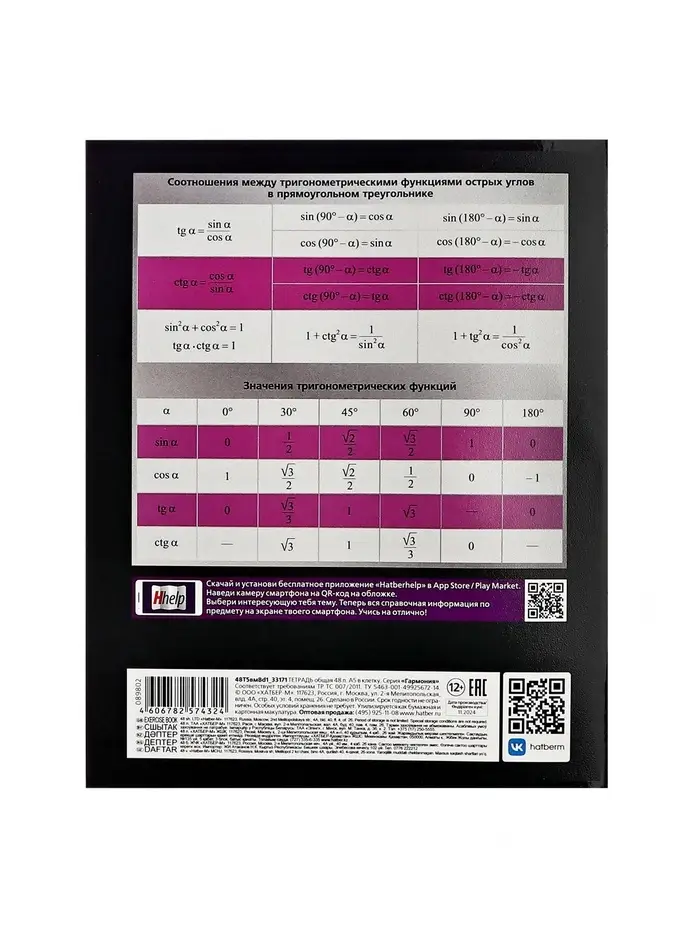 Тетрадь 48 листов в клетку «Гармония» ГЕОМЕТРИЯ, обложка мелованный картон, выборочный лак, с интерактивным справочником, блок офсет