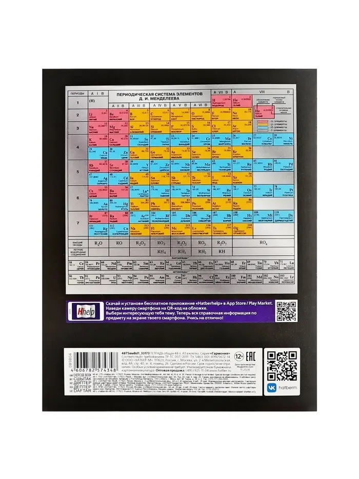 Тетрадь 48 листов в клетку «Гармония» ХИМИЯ, обложка мелованный картон, выборочный лак, с интерактивным справочником, блок офсет