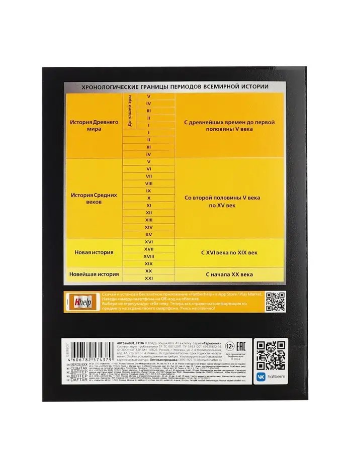Тетрадь 48 листов в клетку «Гармония» ИСТОРИЯ, обложка мелованный картон, выборочный лак, с интерактивным справочником, блок офсет