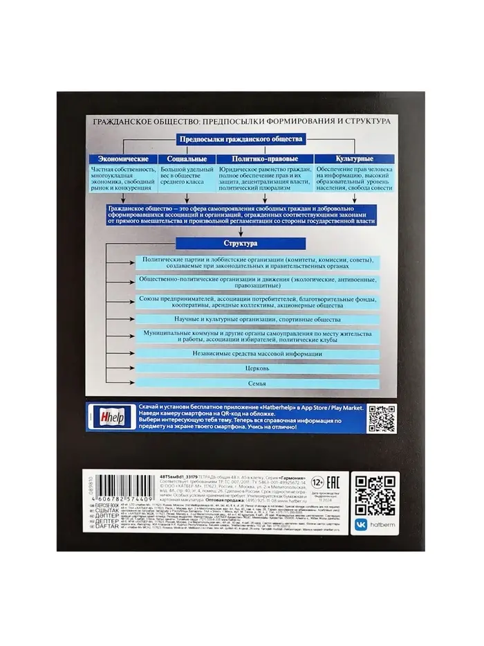 Тетрадь 48 листов в клетку «Гармония» ОБЩЕСТВОЗНАНИЕ, обложка мелованный картон, выборочный лак, с интерактивным справочником, блок офсет