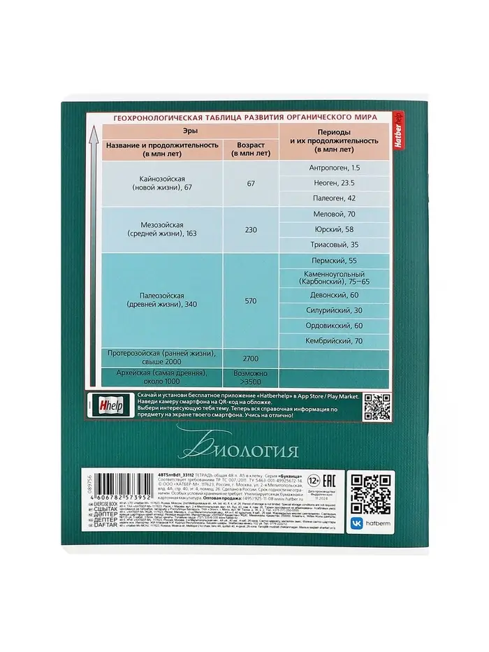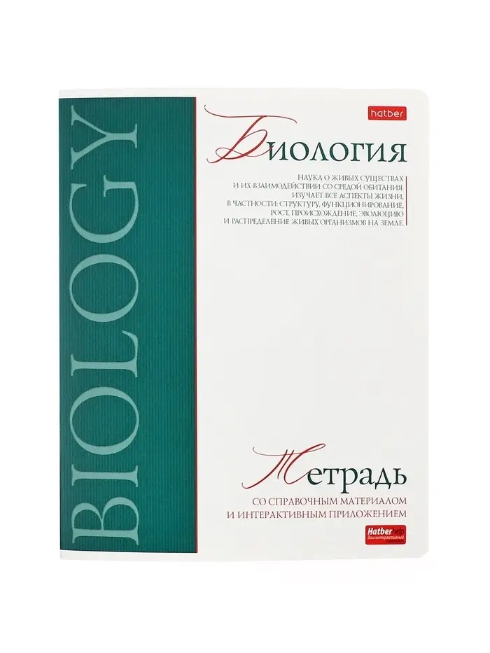 Тетрадь 48 листов в клетку «Буквица» БИОЛОГИЯ, обложка мелованный картон, матовая ламинация, тиснение фольгой, с интерактивным справочником, ...