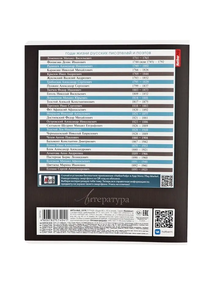 Тетрадь 48 листов в линию «Буквица» ЛИТЕРАТУРА, обложка мелованный картон, матовая ламинация, тиснение фольгой, с интерактивным справочником...