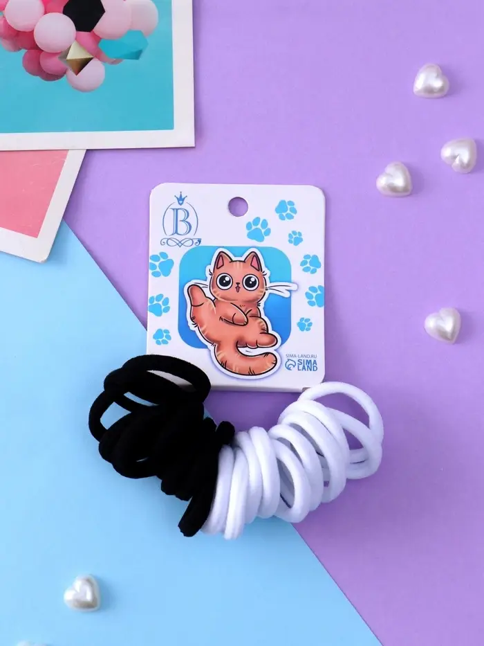 Резинка для волос "Комиксы" (набор 20 шт) котик, 2,5 см, чёрный белый