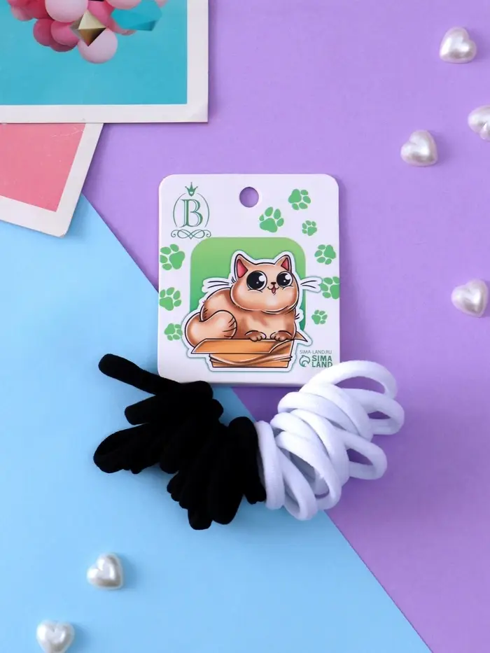 Резинка для волос «Кисонька», набор 20 шт., домик, 2.5 см, чёрная, белая
