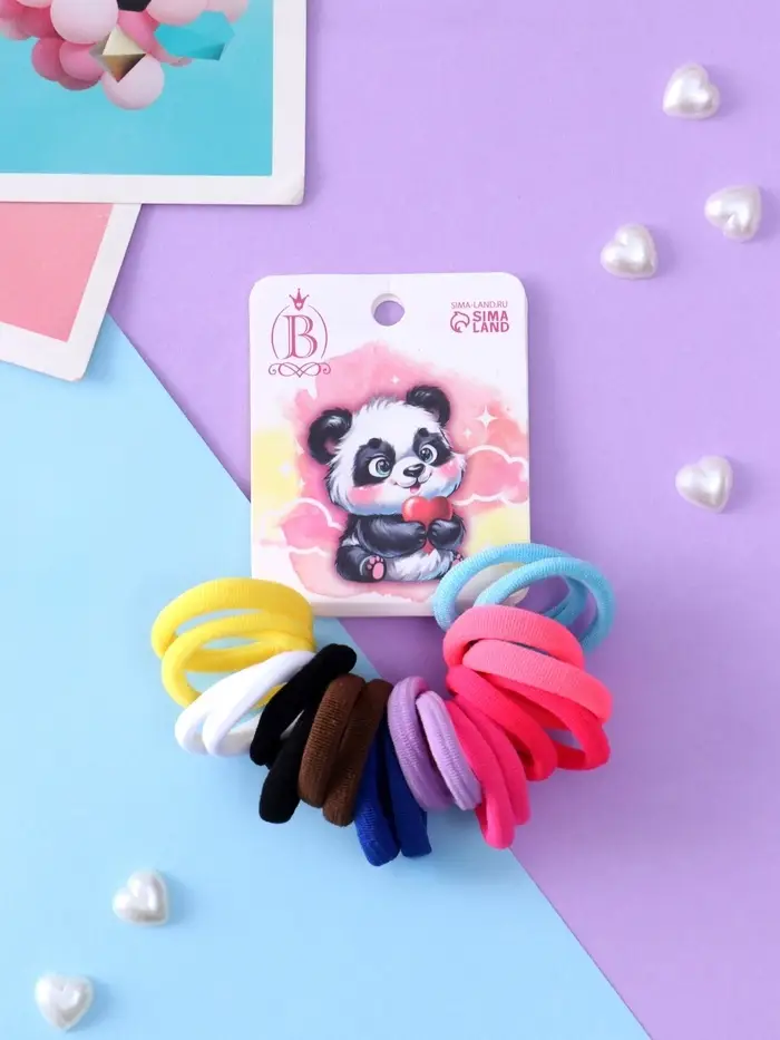 Резинка для волос «Панда», набор 20 шт., сердце, 2.5 см, МИКС