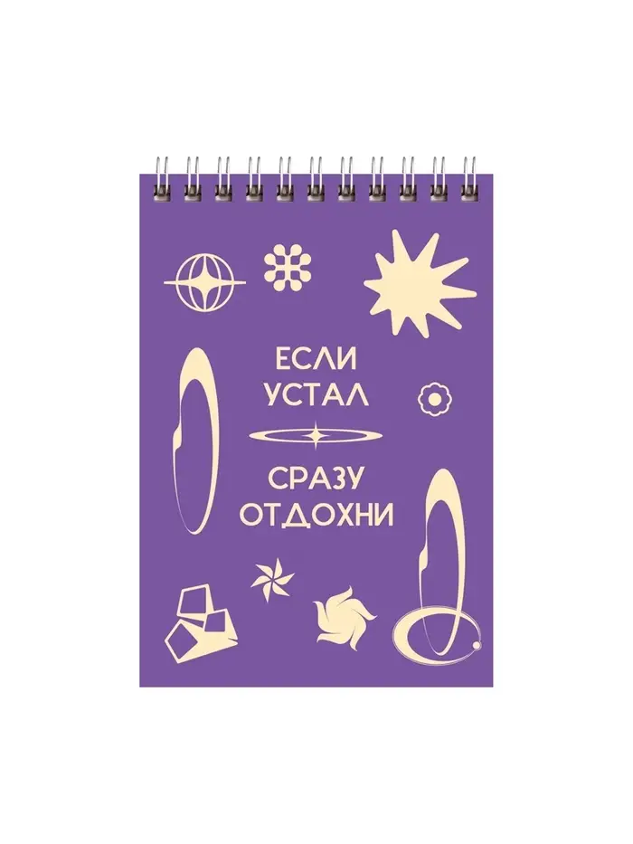 - Обложка из плотного мелованного картона держит форму, а спираль позволяет легко переворачивать страницы. Блокнот не падает и не складывается — можно писать, не придерживая его.