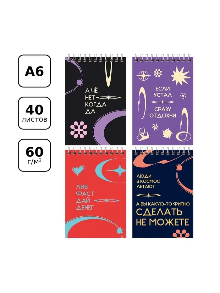 - Разноцветные варианты с лаконичными надписями подойдут для работы, учебы или личных заметок. Выберите свой оттенок — и блокнот будет выделяться среди других.