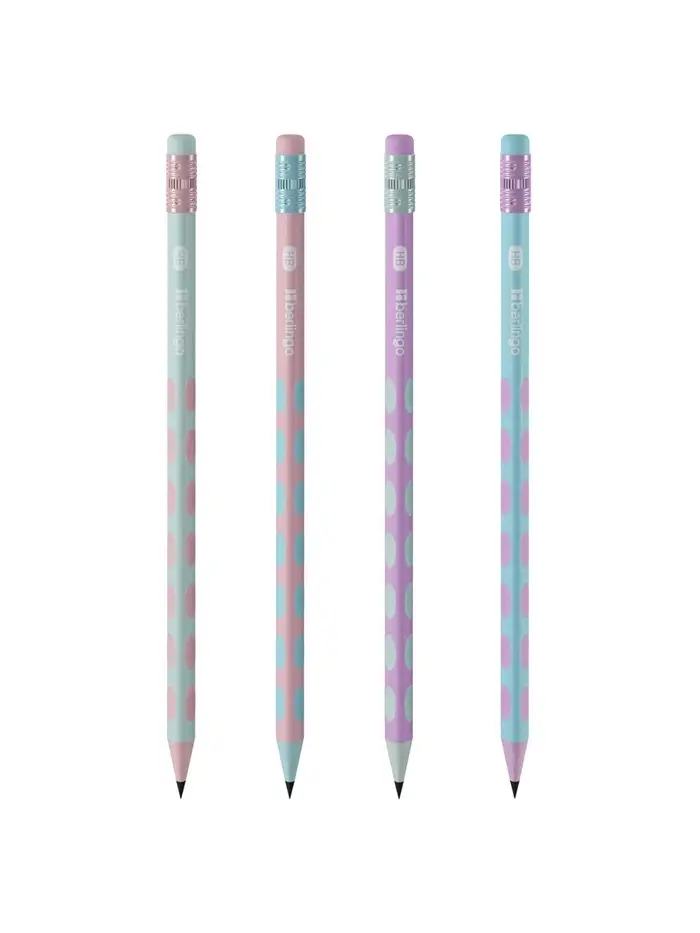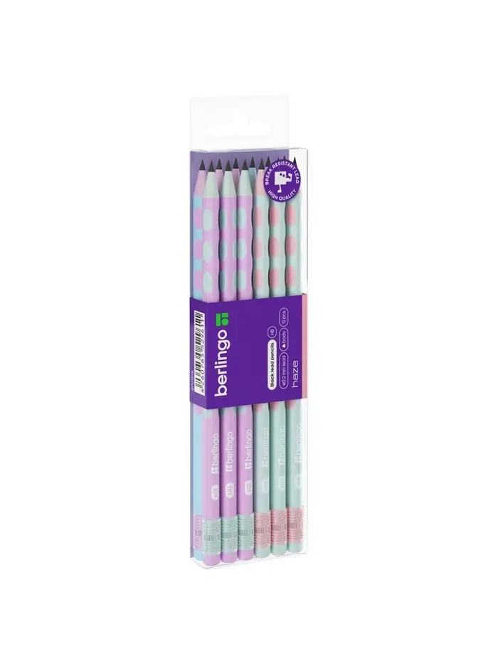 Карандаш чернографитный Berlingo Haze HB, заточенный, трехгранный, с ластиком, МИКС