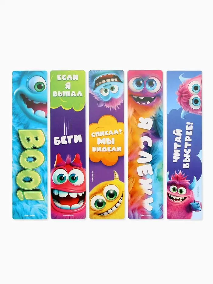 Закладки для книг картонные 5 шт., шпаргалки, Буки Бяки