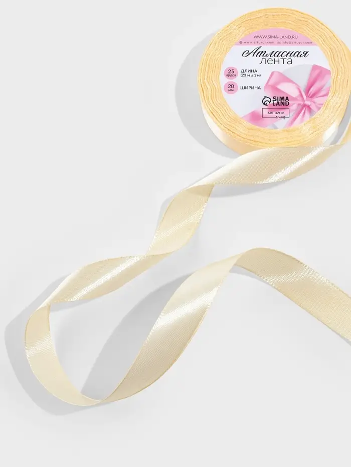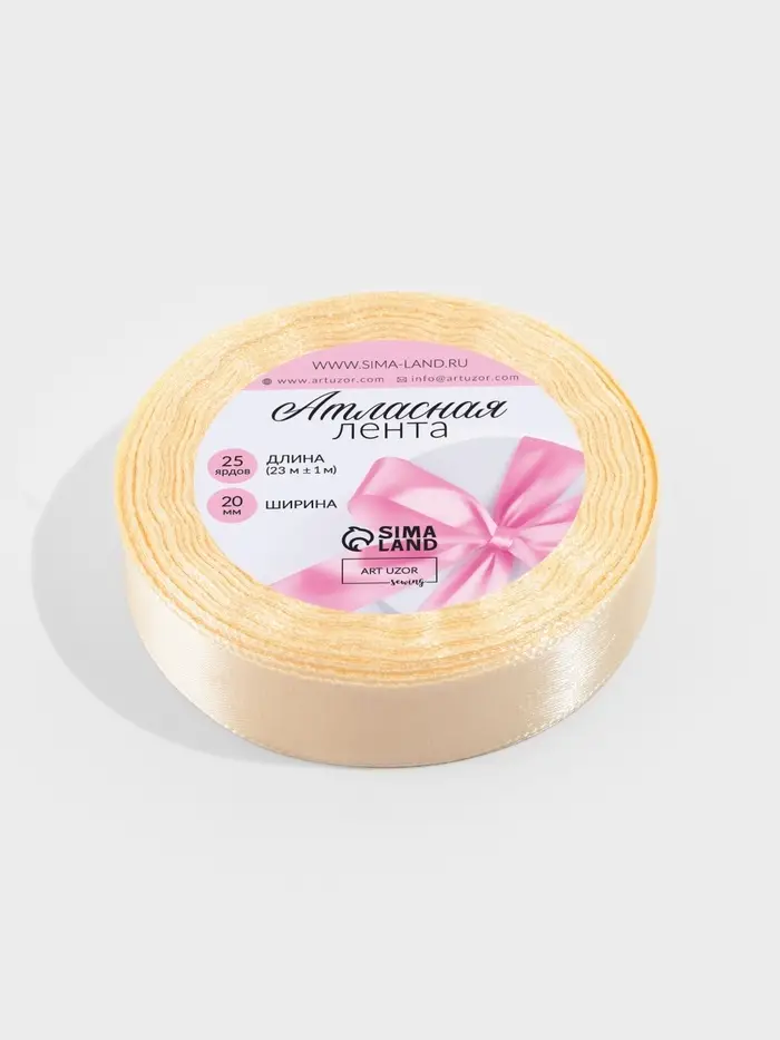 Лента атласная, 20 мм, 23±1 м, светло-бежевая №02