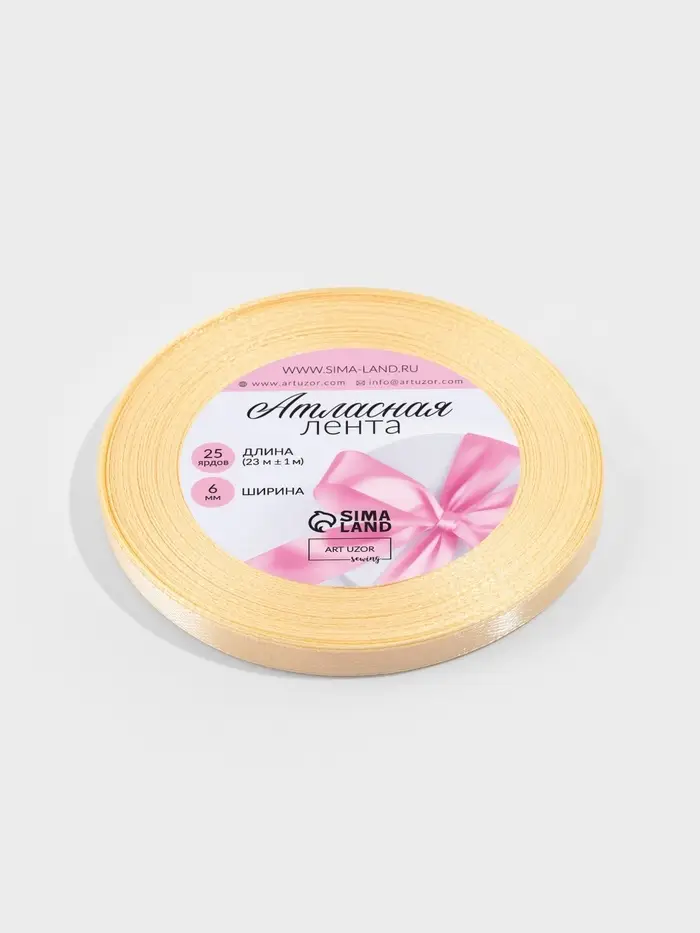 Лента атласная, 6 мм, 23±1 м, светло-бежевая №02