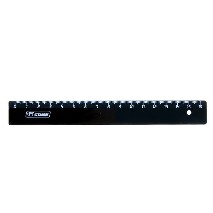 Линейка 16 см Стамм, пластиковая, непрозрачная, чёрная, европодвес