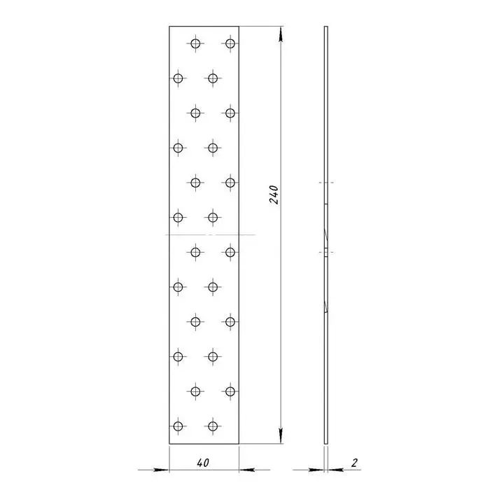 Пластина крепёжная 40 х 240 х 2 мм, оцинкованная