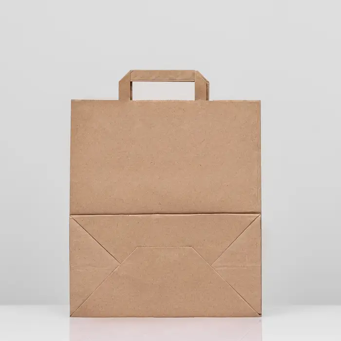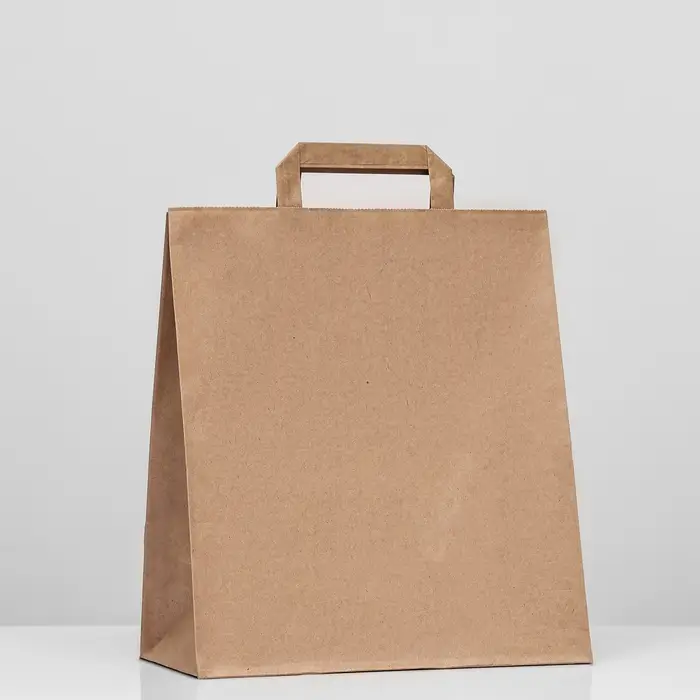 Пакет крафт без печати, плоская ручка 28×15×32 см