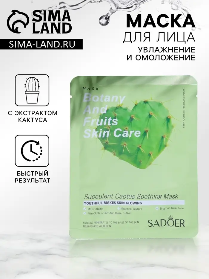 Тканевая маска для лица с экстрактом кактуса, увлажняющая