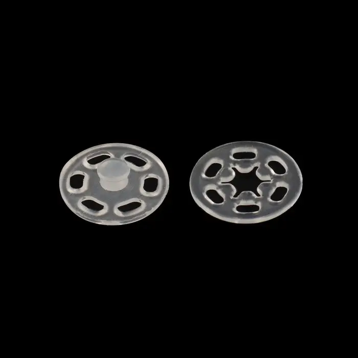 Кнопки выполнены из качественного пластика, они прочно фиксируются в закрытом виде, пришиваются к одежде обычными нитками и не повреждают материал. Кнопки прослужат вам долго и не выйдут из строя даже после машинной стирки и многократного использования.