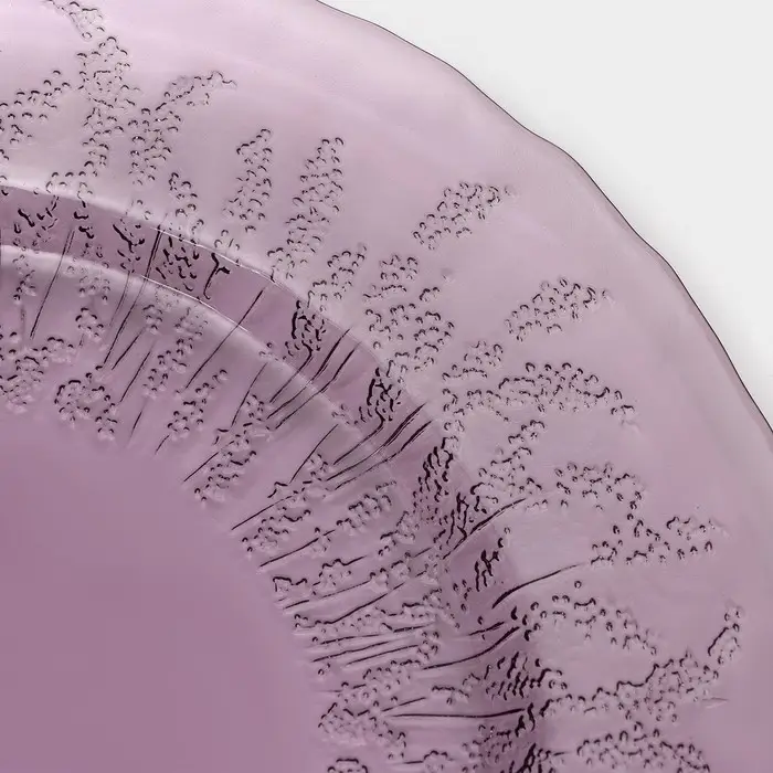 Предметы серии «Французская лаванда» изготовлены из качественного прочного стекла и имеют красивый рельеф в виде лавандовых веточек. Посуда имеет приятный фиолетовый оттенок и будет хорошо смотреться как в праздничной, так и в повседневной сервировке.