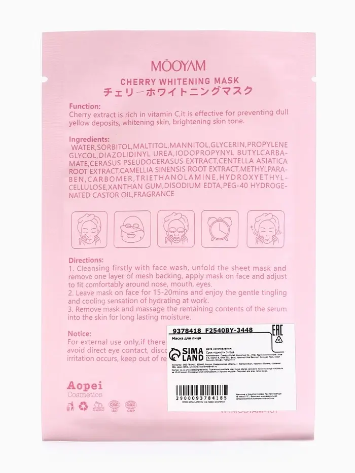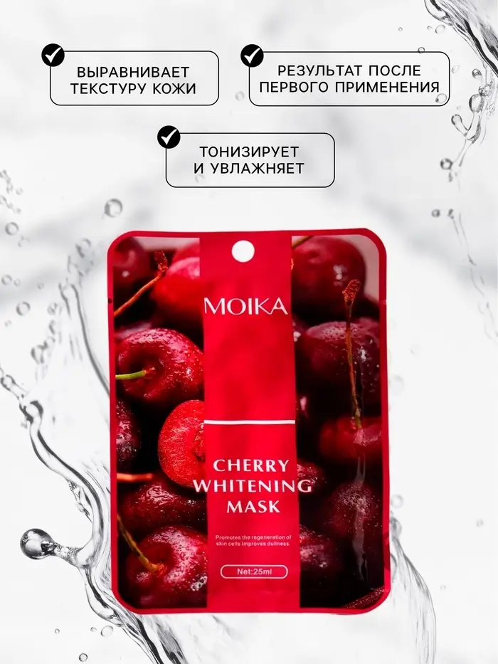 Маска тканевая увлажняющая для лица с экстрактом вишни