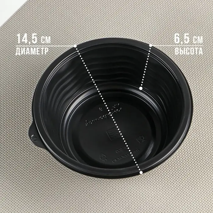 Контейнер пластиковый одноразовый «Супница», 500 мл, 11,2 см, чёрный