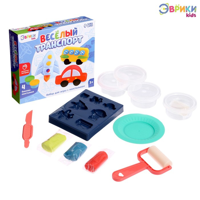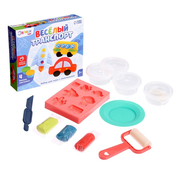 Набор для игры с пластилином «Весёлый транспорт», 4 баночки с пластилином