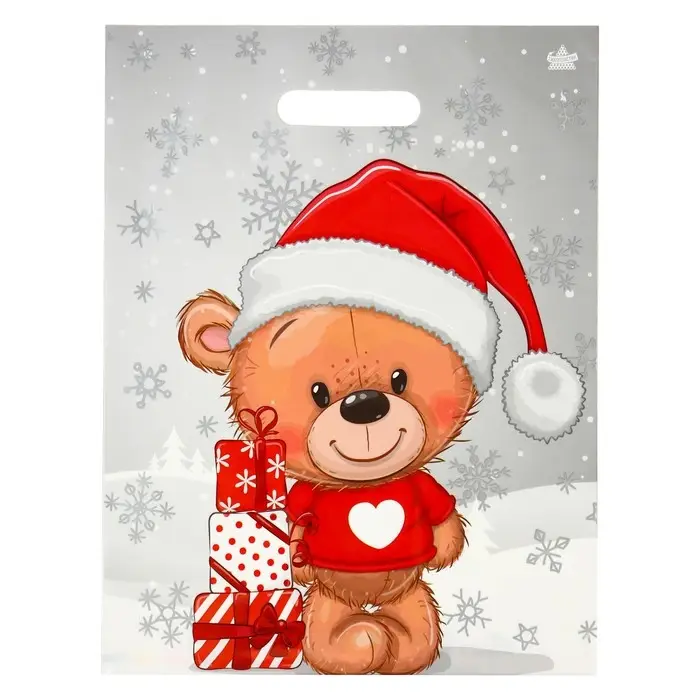 Пакет "Мишка с подарками", полиэтиленовый с вырубной ручкой,гл 40 х 31 см.
