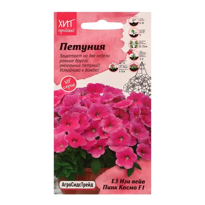 Семена цветов Петуния "Е3 Изи Вейв Пинк Космо F1", 5 шт