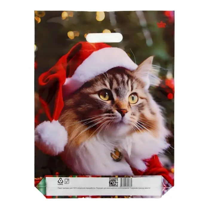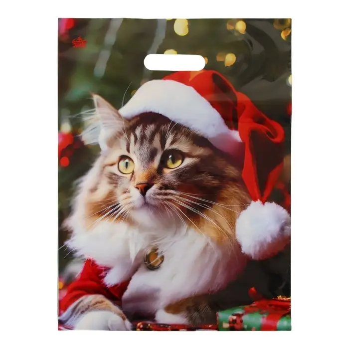 Новогодний пакет полиэтиленовый с вырубной ручкой - это удобный и практичный аксессуар для переноски покупок или упаковки подарков.