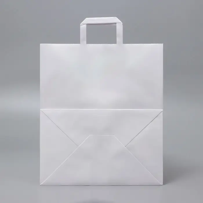 Пакет крафт без печати, белый, плоская ручка, 32 х 20 х 37 см
