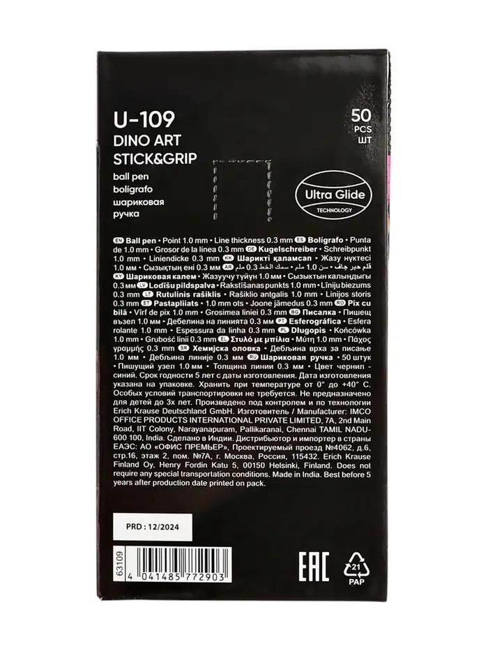 Ручка шариковая ErichKrause U-109 Stick&Grip Dino Art, 1.0мм, рез.держатель, синяя