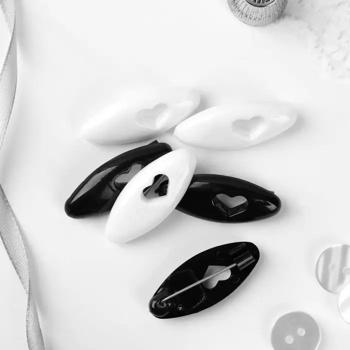 Булавки безопасные «Сердце», 40 мм, 6 шт., цвет чёрный/белый