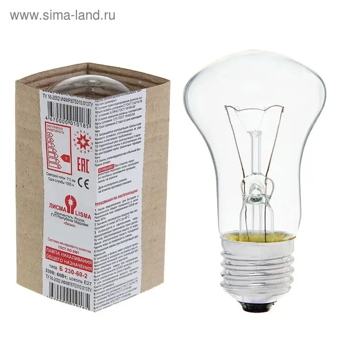 Лампа накаливания «Лисма», Б, Е27, 60 Вт, 230 В