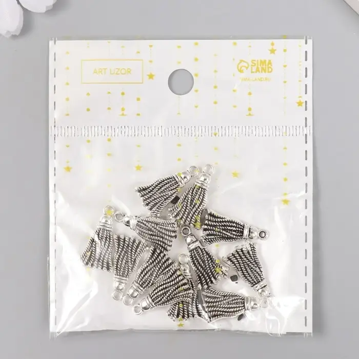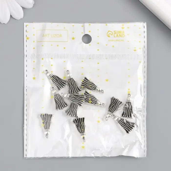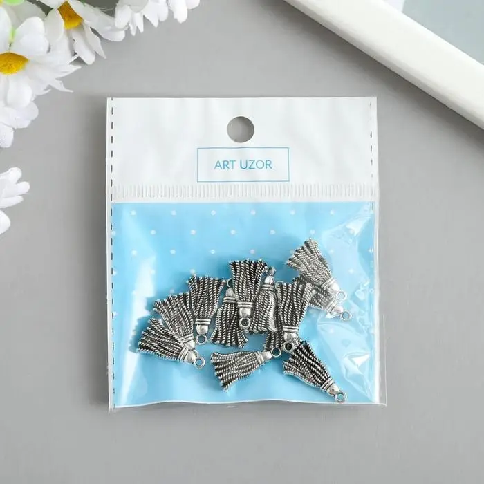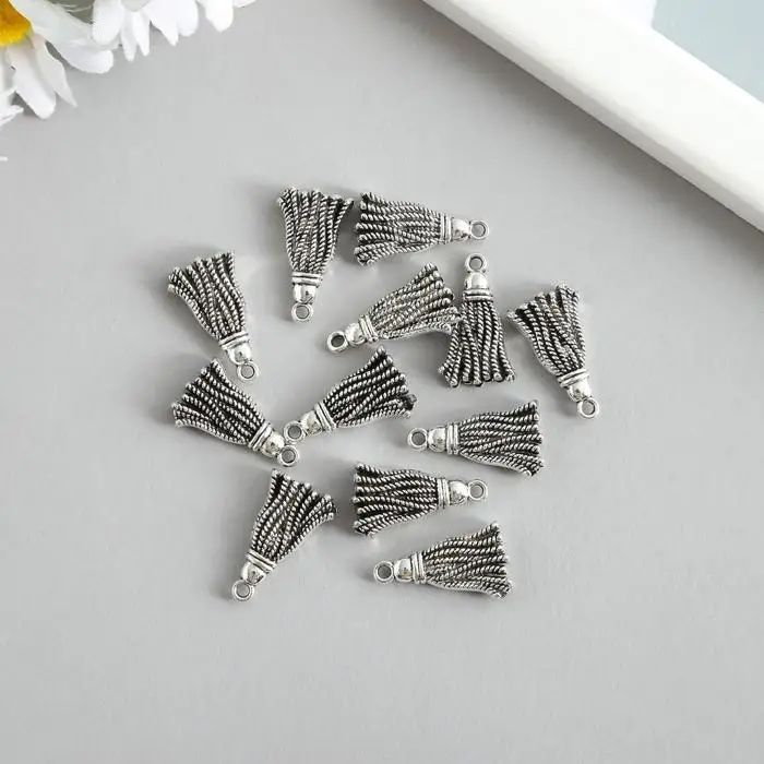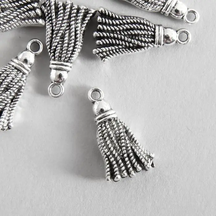 Металлический элемент, декоративная подвеска «Арт Узор. Кисточка», серебро, 2×1.2 см