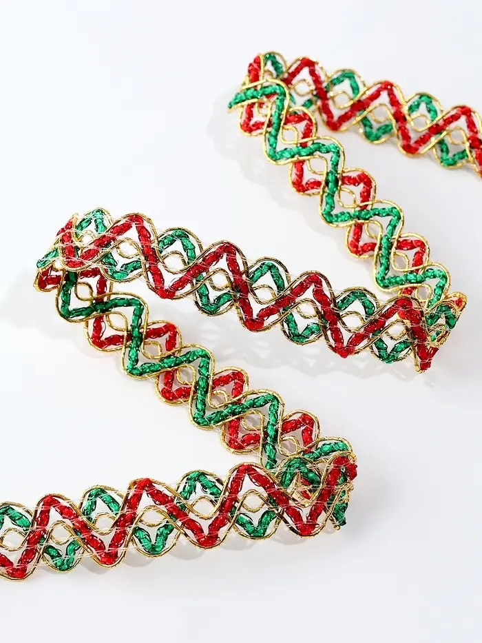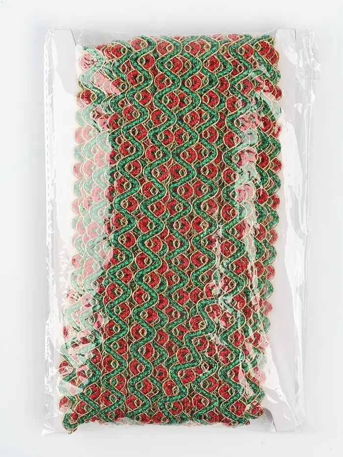 Тесьма Змейка красно-зелено-золотая 1.5 см намотка 25 метров