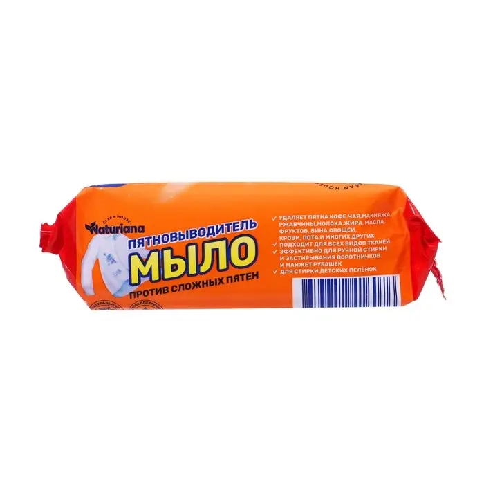 Мыло пятновыводитель хозяйственное 72% NATURIANA в цветной обертке - это высококачественное мыло, которое эффективно справляется с различными видами пятен.