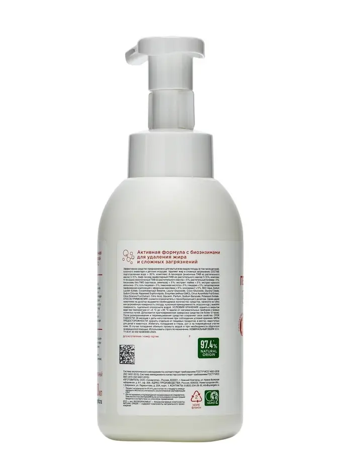 Пенка для мытья посуды Synergetic «Лайм и красный апельсин», 500 мл