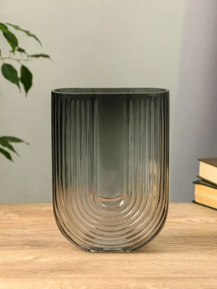 Ваза стекло настольная "Айрис" 23,5х17х7 см, серый