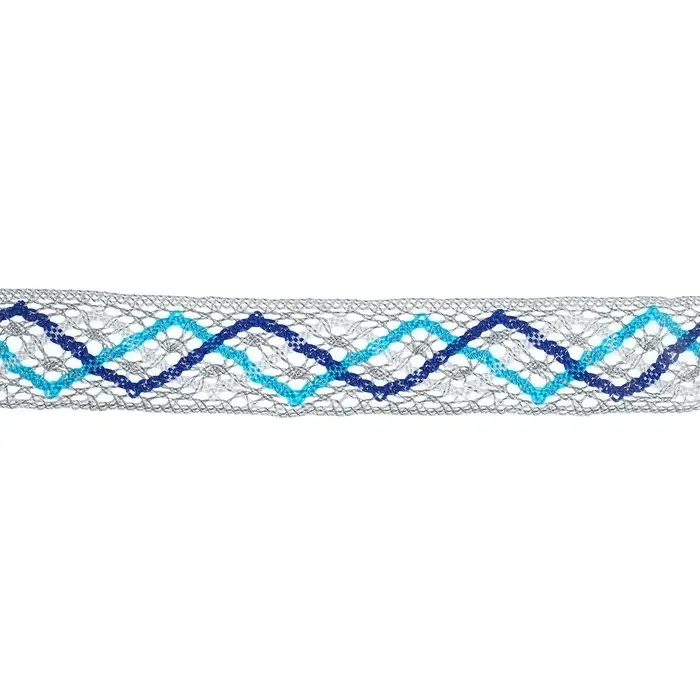 Тесьма плетёная сине бело голубая на серебре 3,2 см, в упаковке 20 метров