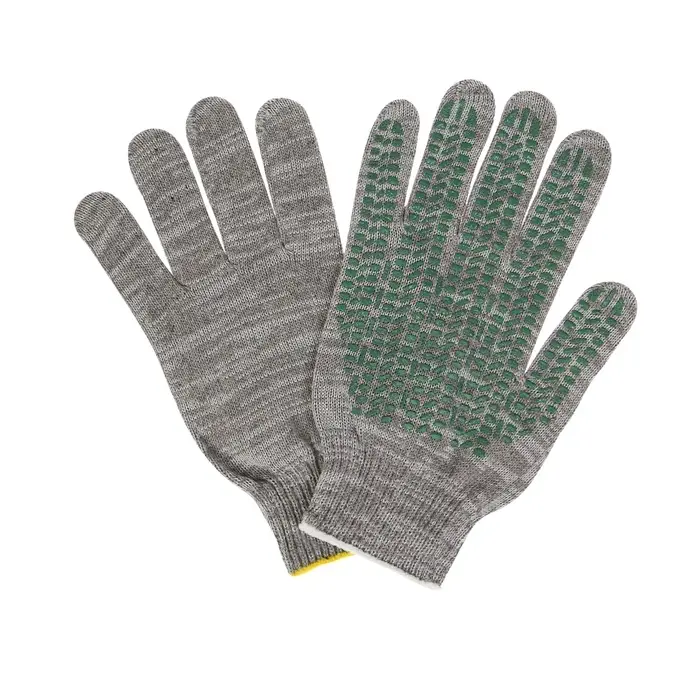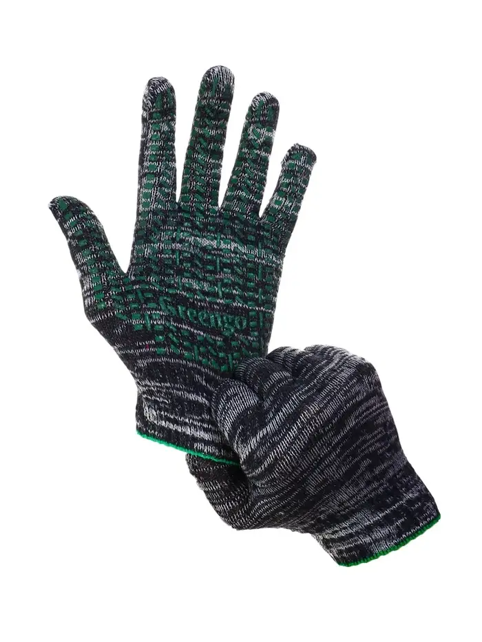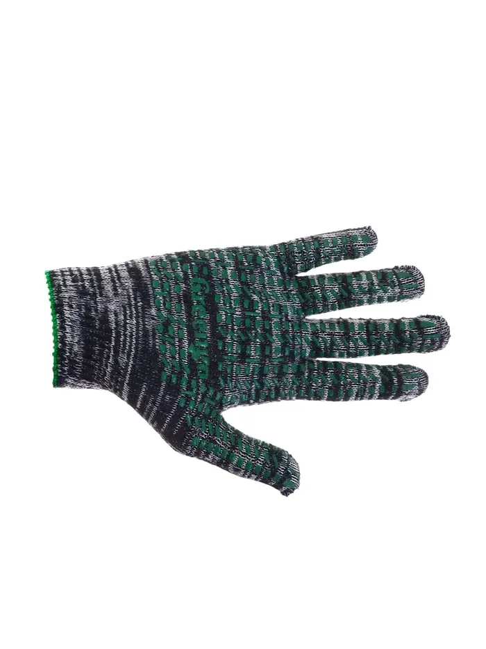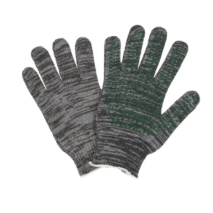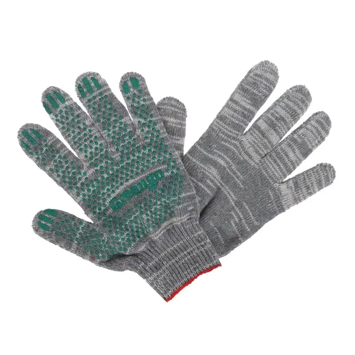 Перчатки рабочие, хб, вязка 10 класс, 5 нитей, размер 9, с ПВХ точками, серые, Greengo