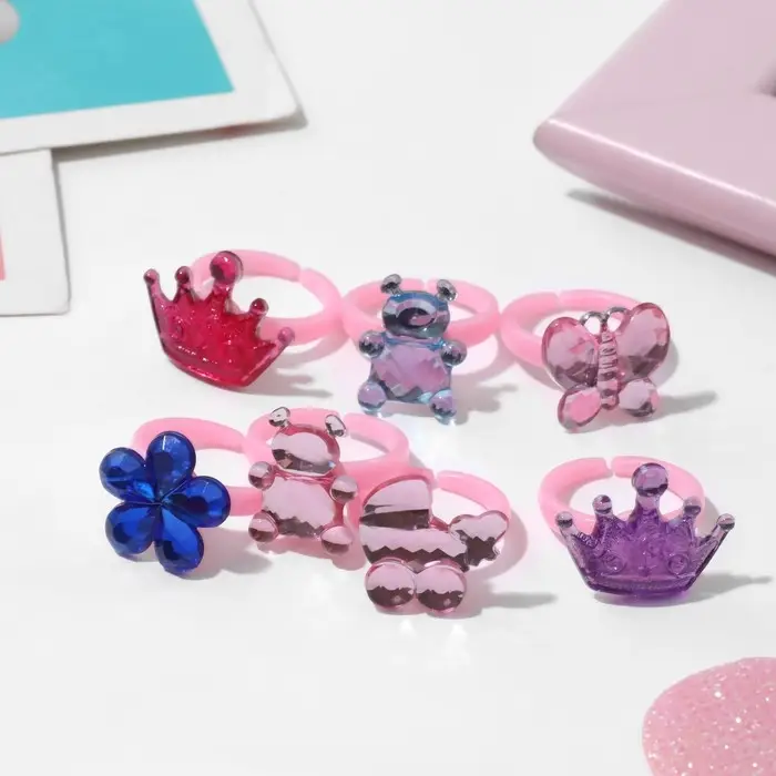 Кольцо детское «Выбражулька» ассорти для девочек, форма МИКС, цвет МИКС, безразмерное