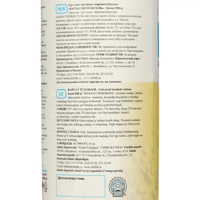 Чистящий средство Barhat "Пемоксоль" Лимон, порошок, 500 г