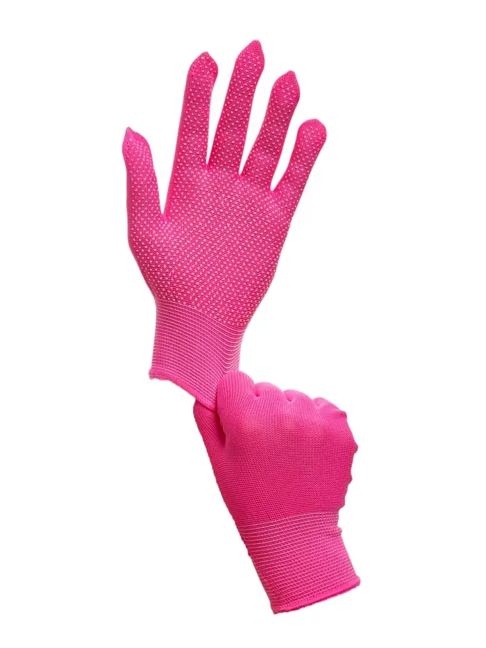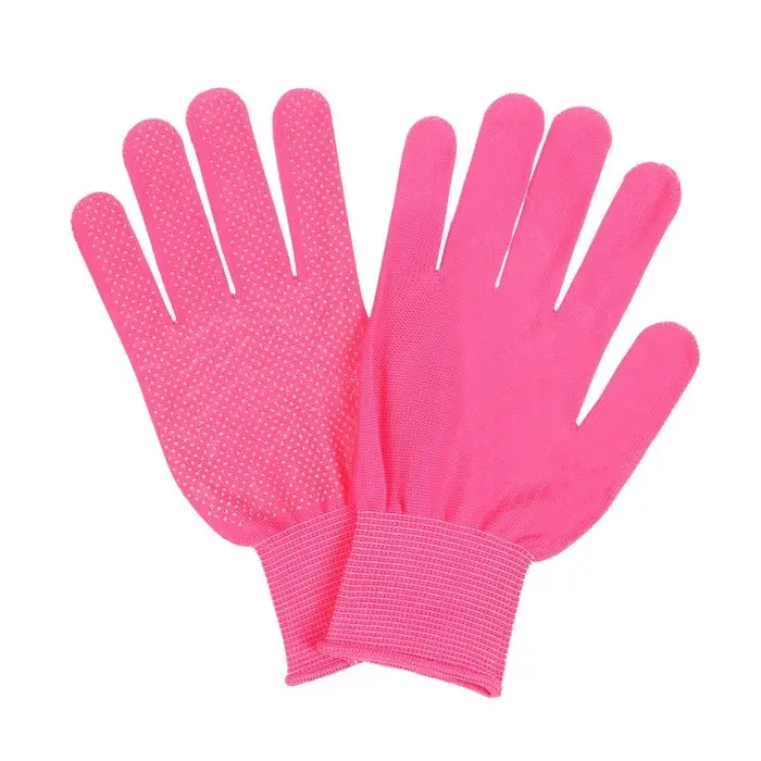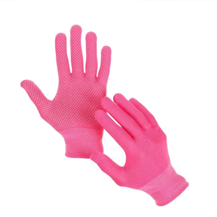 Изделия выполнены из хлопка и нейлона и имеют точечное ПВХ-покрытие: такое сочетание материалов делает их одновременно комфортными и износоустойчивыми. Яркая расцветка поможет легко и быстро найти пропажу среди грядок.