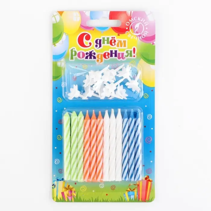 Свечи в торт «Спираль», 8 см, классические, микс