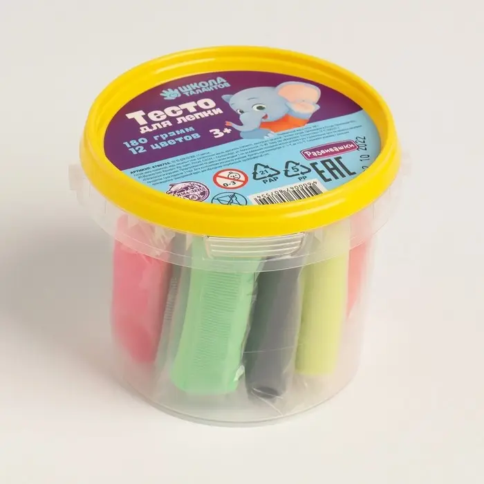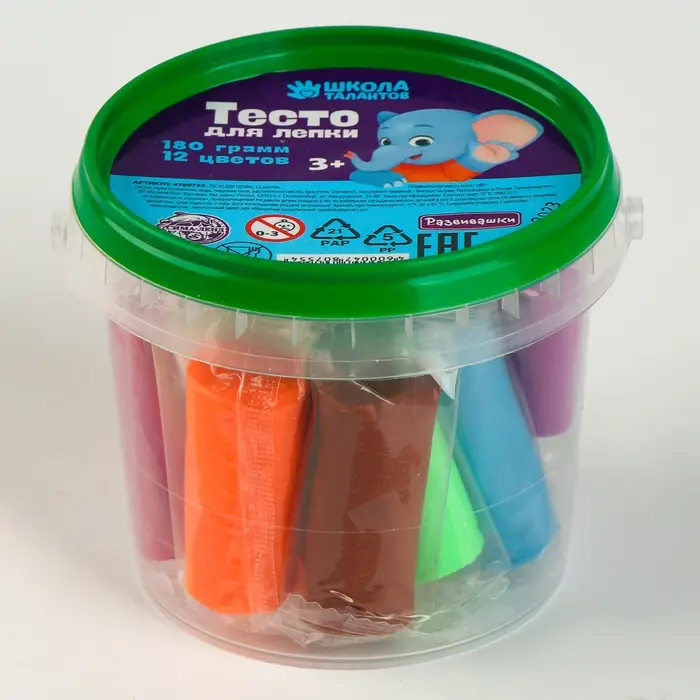 Тесто не остаётся на руках и не имеет неприятного запаха. Малышу будет комфортно заниматься с таким материалом.На открытом воздухе тесто застывает в течение 12 часов.