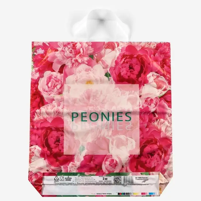 Пакет «Изобилие пионов», полиэтиленовый, с петлевой ручкой, 42×38 см, 37 мкм