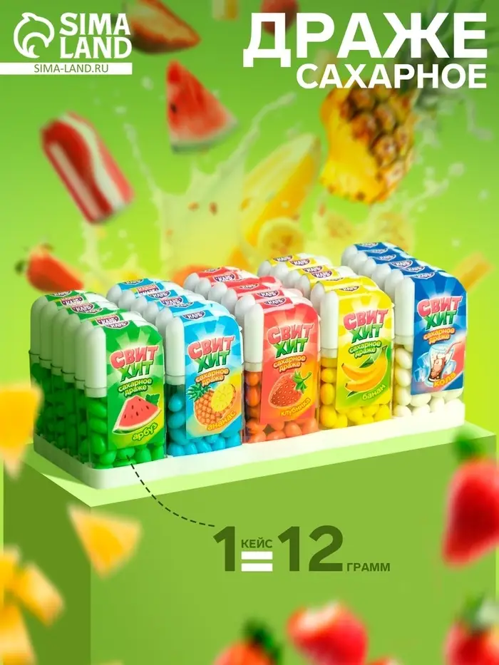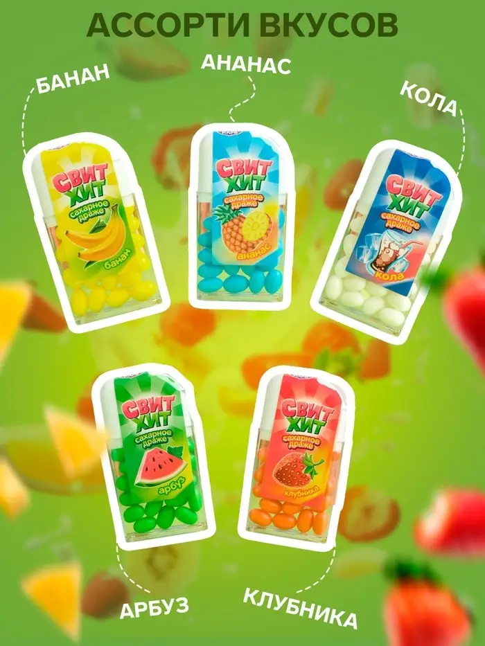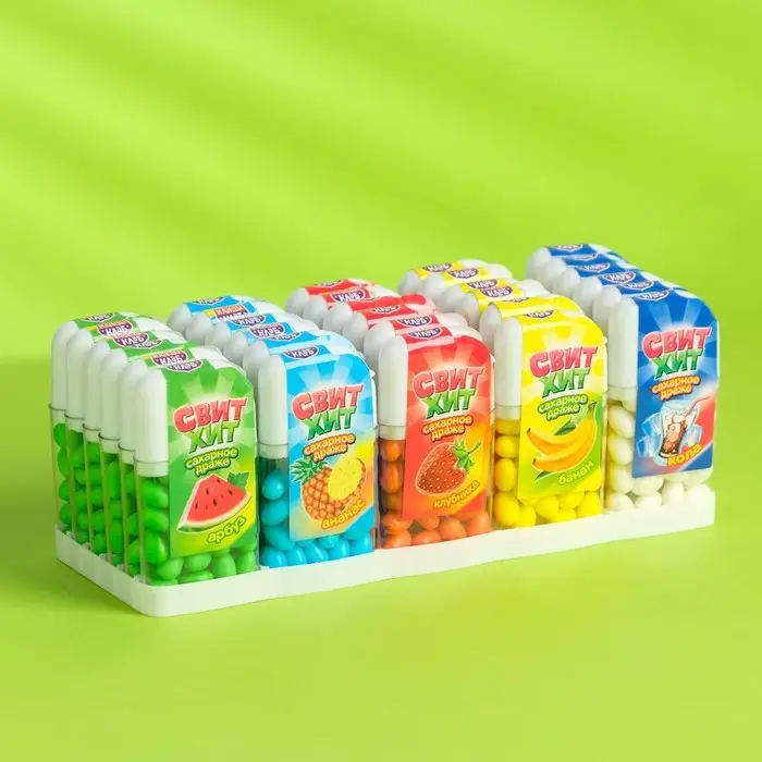 Эти сладкие драже станут отличным угощением для любого праздника или просто для поднятия настроения. Упакованные в удобный пластиковый кейс, они легко помещаются в сумке или кармане, что делает их идеальными для перекуса на ходу.